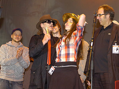 Angelas Park aus Dresden und Berlin sind die ersten Gewinner des Panikpreises. Sie setzten sich am vergangenen Samstag beim Hermann-Hesse-Festival in Calw gegen fünf Konkurrenten durch. Neben einem vergoldeten Originalhut von Udo Lindenberg bekam die Band zusätzlich 3000 Euro und die Chance mit dem Kultrocker und seinem Panikorchester noch am selben Abend auf der Bühne zu stehen. Zweite wurden Musa aus Würzburg und Potsdam, die sich über einen Panikkurs bei Udo Lindenberg in Hamburg und 2000 Euro freuen dürfen. Dritte wurden Nele aus Rheine, die zuvor schon mit dem Sonderpreis der Sparkasse Pforzheim/Calw für die beste Hesse-Gedicht Vertonung ausgezeichnet wurden. Für Platz drei gab es 1000 Euro und ein Coaching an der Popakademie in Mannheim.