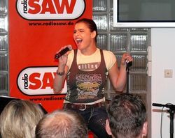 Julia Neigel als Radio Moderatorin: Am Sonntag-Abend präsentierte sie gemeinsam mit Ingolf Kloss bei radio SAW neue und alte Hits. Sie las Wetter und Verkehr und plauderte mit Ingolf über Leben und Karriere. SAW-Hörer konnten live Fragen stellen. Ausserdem legte Julia ihre ganz persönlichen Lieblingssongs auf.