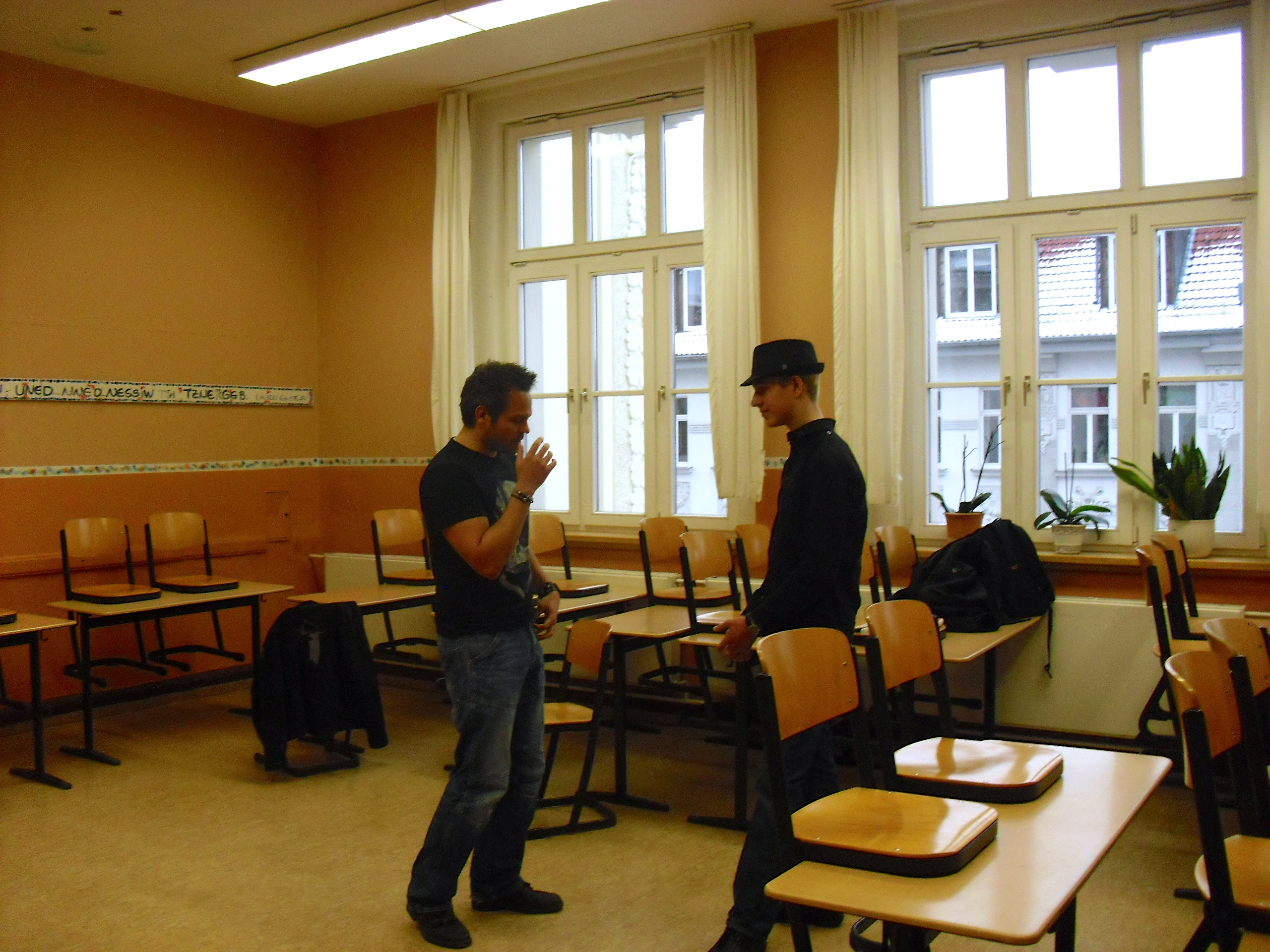 Foto: (ak) Schauspieler Michael Eisenburger coacht Udo Darsteller Florian Weger