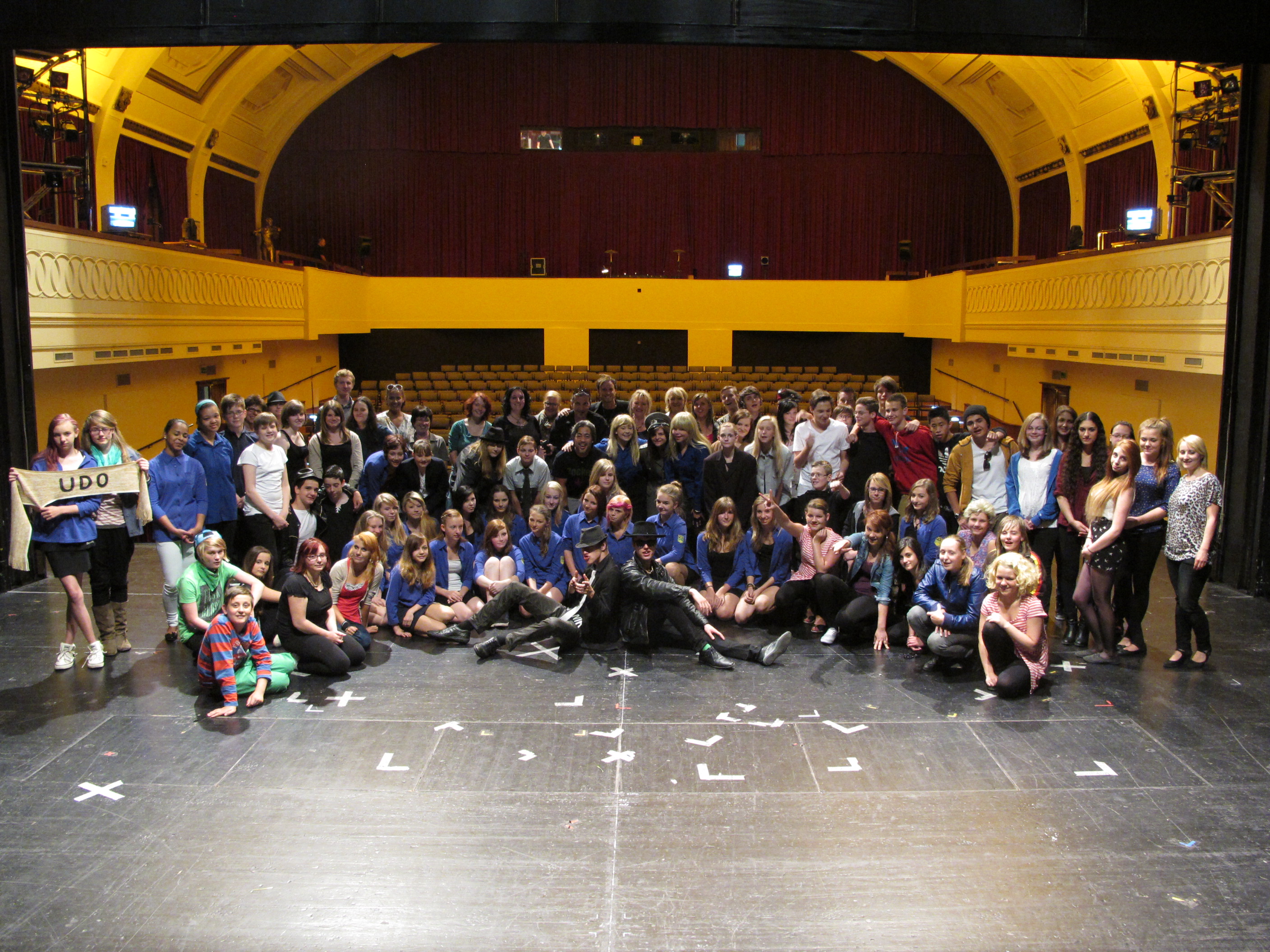 Foto: © etm. Schüler, Coaches und Lehrer nach der Aufführung in Leipzig.