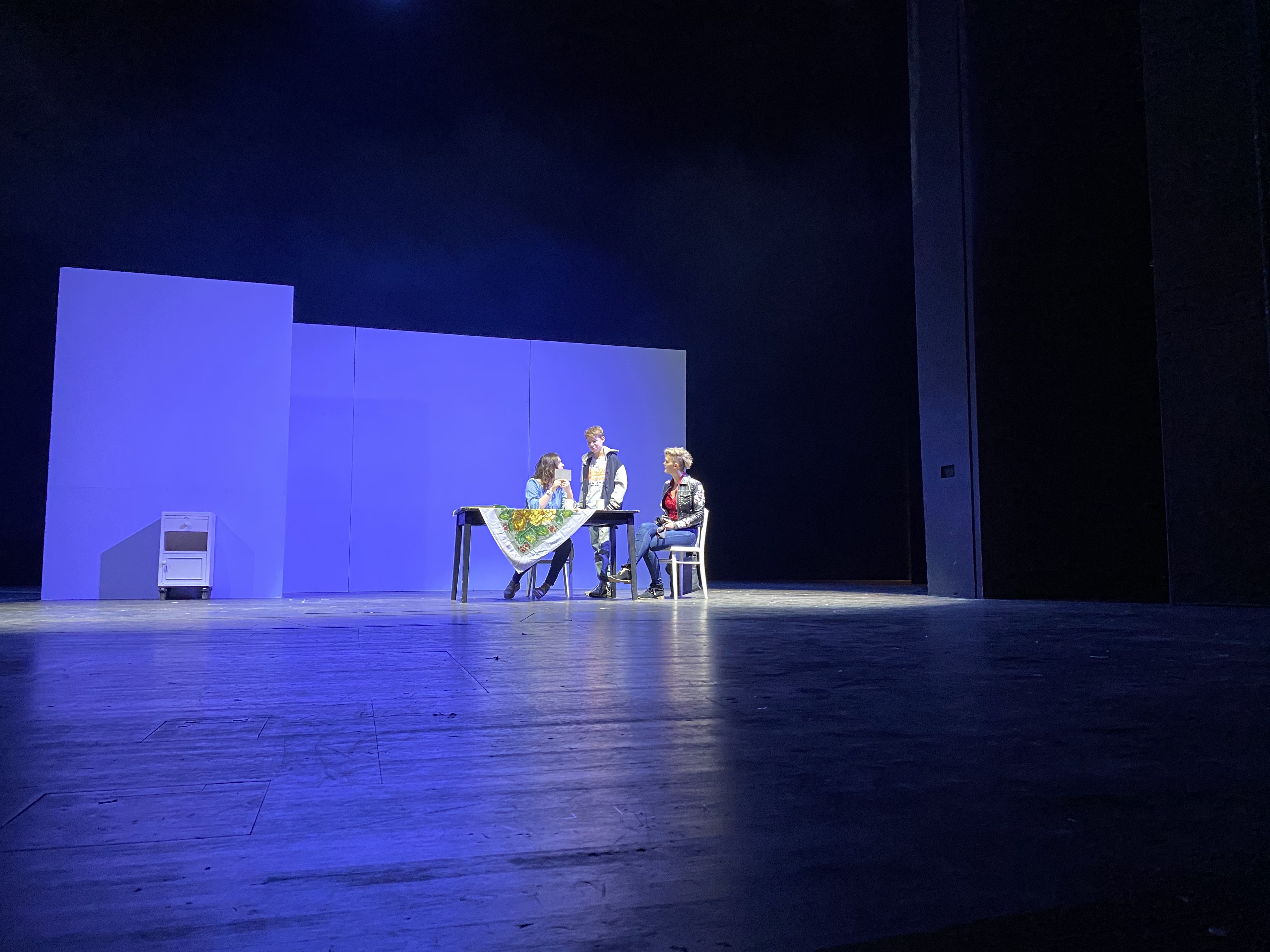 Hier ein paar Impressionen der letzten Proben in der Schulturnhalle Milda und vom Aufbau, Einleuchten und ersten Durchläufen im Deutschen Nationaltheater Weimar.
