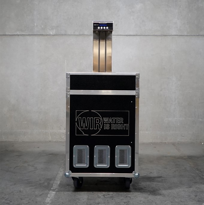 Der Gründer der Stiftung Water Is Right, Rolf Stahlhofen, war jahrelang auf Tournee, erst als Roadie, Tourmanager, dann selbst als Sänger, mit seiner Band Söhne Mannheims, oder auch mit Peter Maffay u.v.a.: “Mich störte es schon immer, dass überall halbleere Plastikflaschen in den Hallen und um Backstage rumlagen. Deswegen bat ich unsere Techniker und Ingenieure eine tourneetaugliche Wasserlösung zu entwickeln. Mein Freund Udo Lindenberg, seine Stiftung, seine Band, die Techniker und vor allem sein Caterer Andre Rossow, waren unser Forschung- und Entwicklungsdepartment“, lacht er. Die in Flight-Cases verbauten, mobilen WIR-Wasserbars, die an das örtliche Leitungswassersystem angeschlossen werden, bieten eine zuverlässige und nachhaltige Lösung für die Trinkwasserversorgung von Veranstaltungen jeder Größe für Crew- und Artistcatering im Backstage, ebenso wie für den öffentlichen Gastro- und Schankbereich.